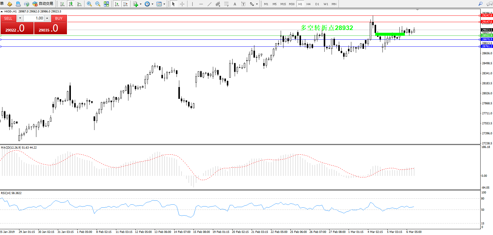 交易策略:28932上方看涨,目标29147、29247