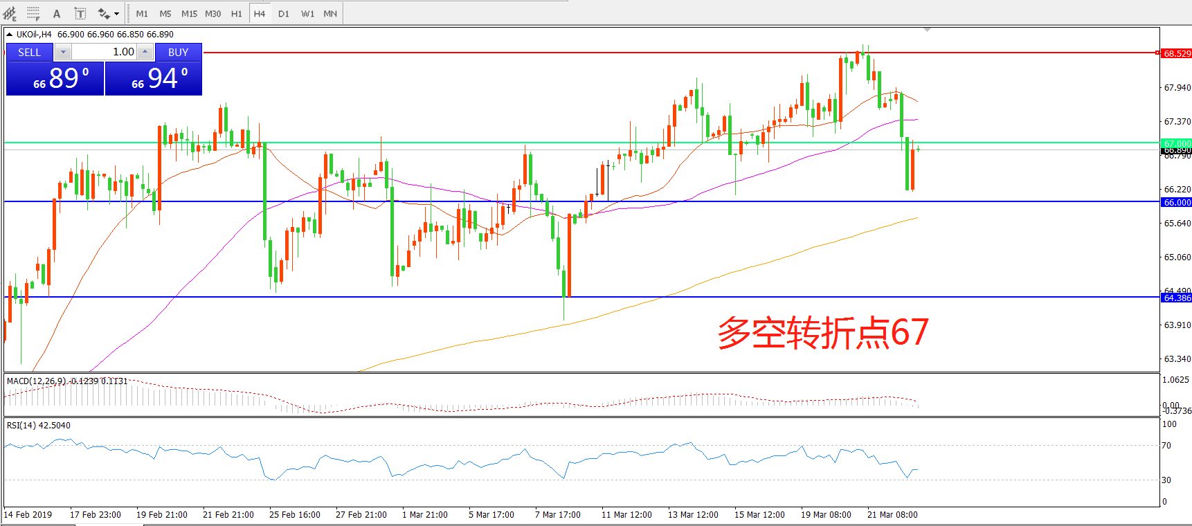 交易策略: 在67.00之下看跌,目标66.00 64.00