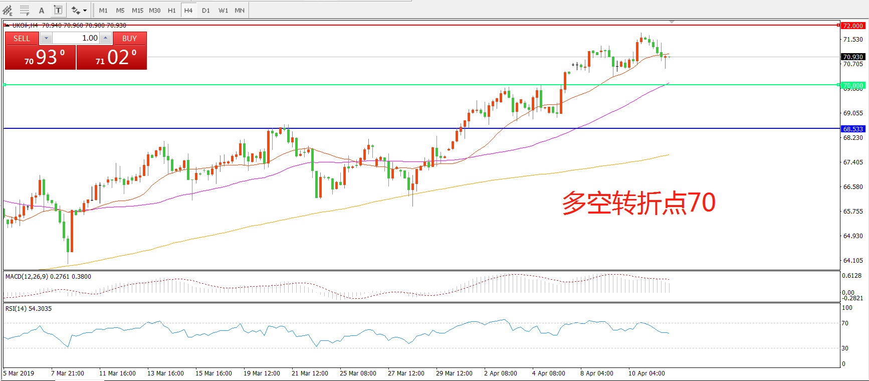 多空转折点:70.00