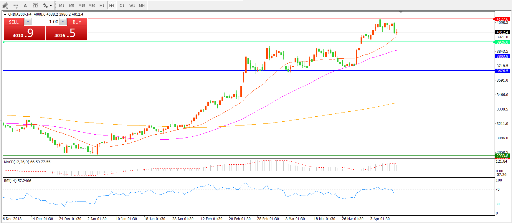 4小时图看,中华指数阳线连续拉升,一度接近4142后出现回落,整体依然偏多,但调整成为可能。 MACD红柱增加,RSI指标拐头,多头趋势依然明显,延续上升概率较大。