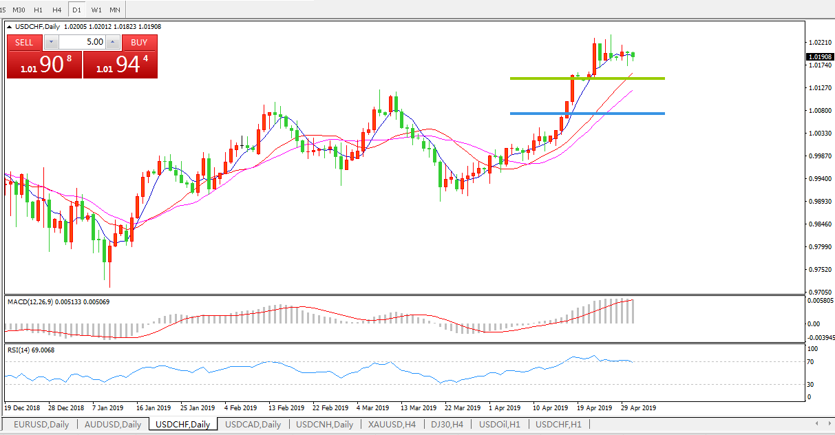 交易策略:在1.0150之上,看涨,目标价位为 1.0250,然后为1.0340。