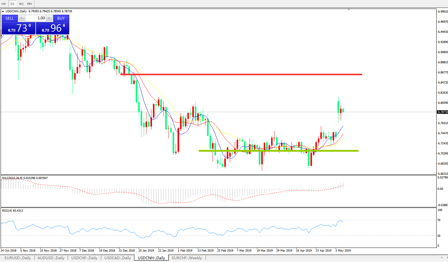 技术面简析:日线图均线呈有序多头排列看多,汇价拉升后开启窄幅整理态势,MACD上穿0轴且动能柱0轴上方快速放量,RSI急速走升,汇价击穿上方压制继续上行,预计短期汇价或存在整理可能,中期不排除有进一步上行空间,重点关注中美贸易谈判最新进展及特朗普推特更新情况。
