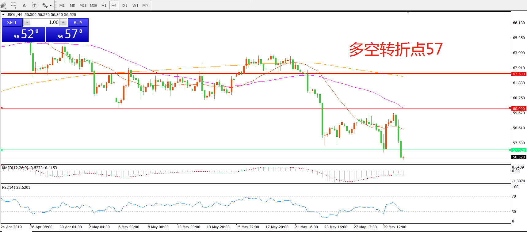 多空转折点:57.00