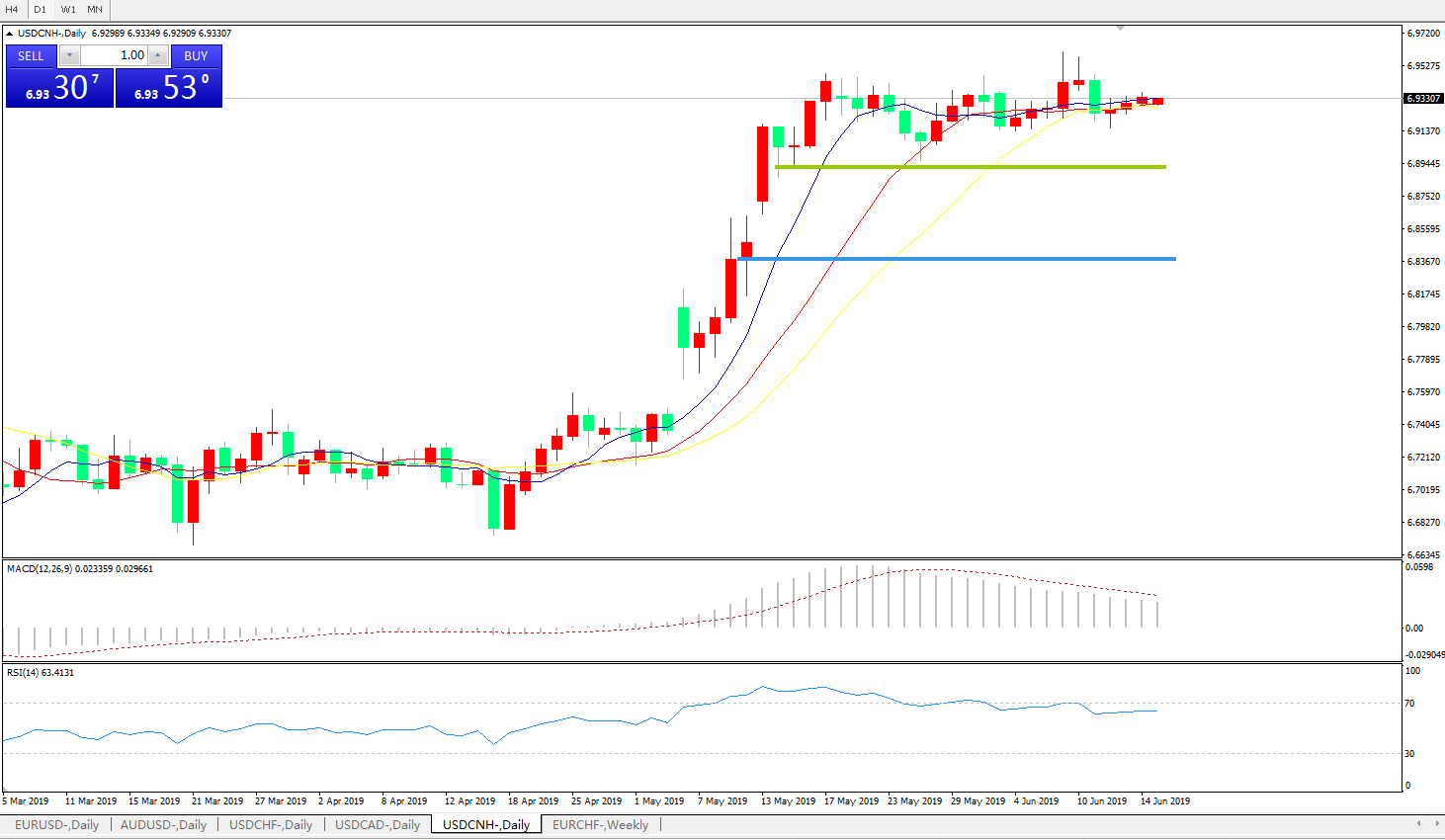 技术面简析:日线均线粘合呈宽幅整理态势MACD0轴上方运行但动能柱持续缩量RSI下穿超卖区域后走平,汇价延续整理态势,预计短期汇价有整理回落需求,中期重点关注中美贸易争端后续进展