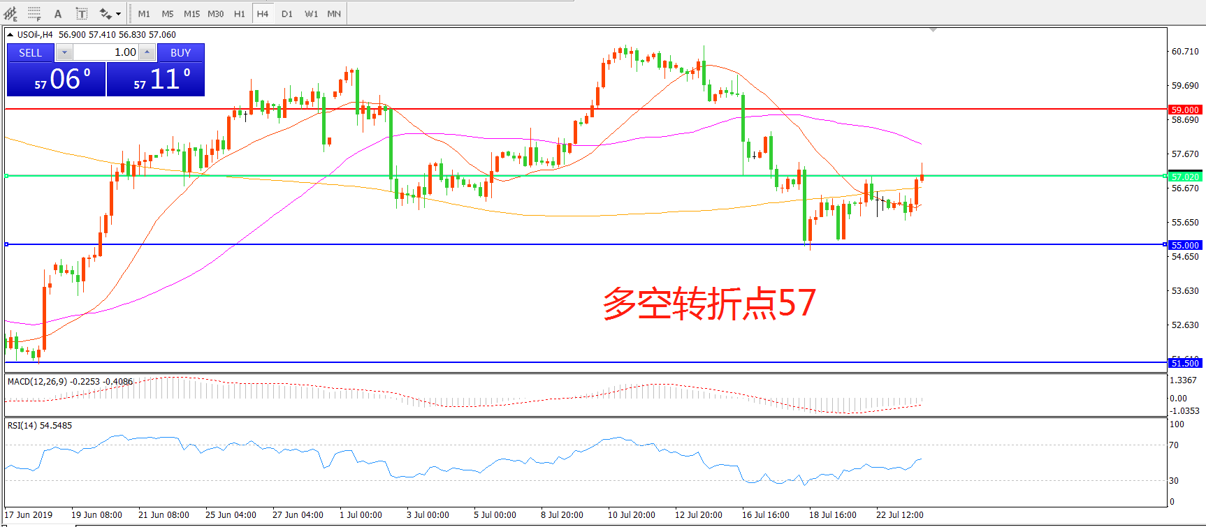 交易策略:在57.00之上看涨,目标59.00    61.00
