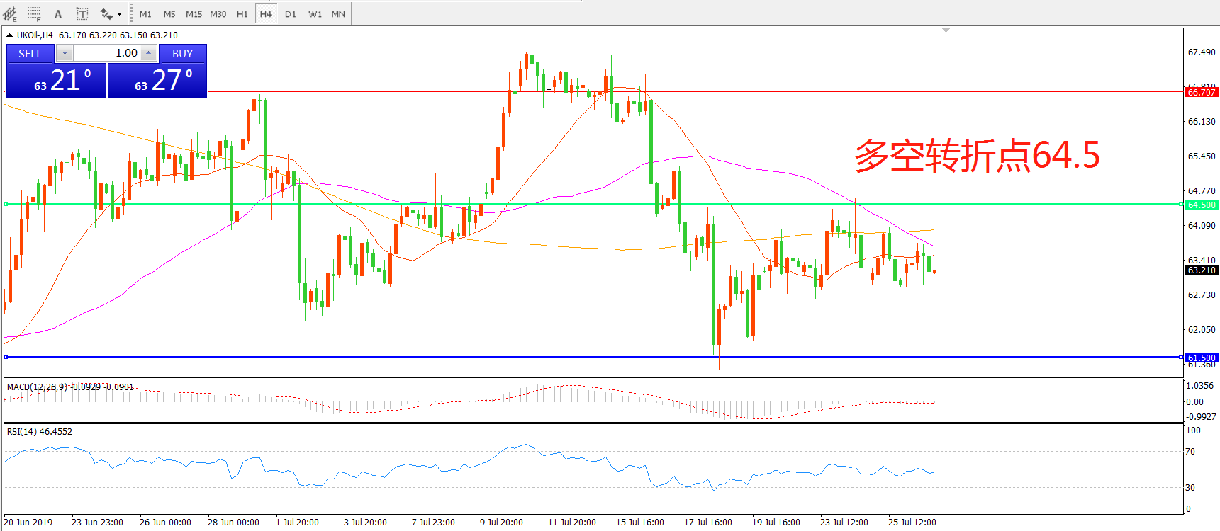 交易策略:在64.50之下看跌,目标61.50   57.50