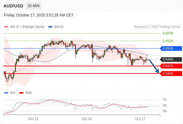 在 0.6505 之下,看跌,目标价位为 0.6470 ,然后为 0.6455 。