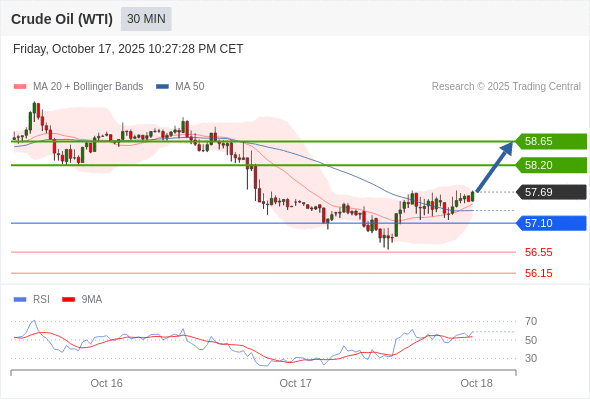 在 57.10 之上,看涨,目标价位为 58.20 ,然后为 58.65 。