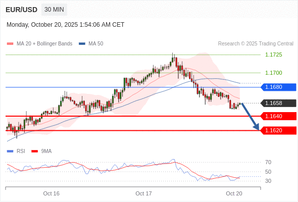 交易策略: 在 1.1680 之下,看跌,目标价位为 1.1640 ,然后为 1.1620 。