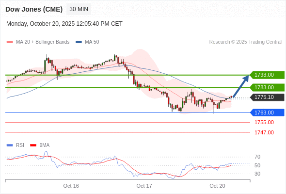 美国道琼斯指数期货 (Z5) 当日内: 新一轮上升。