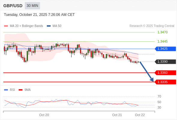 在 1.3425 之下,看跌,目标价位为 1.3360 ,然后为 1.3335 。