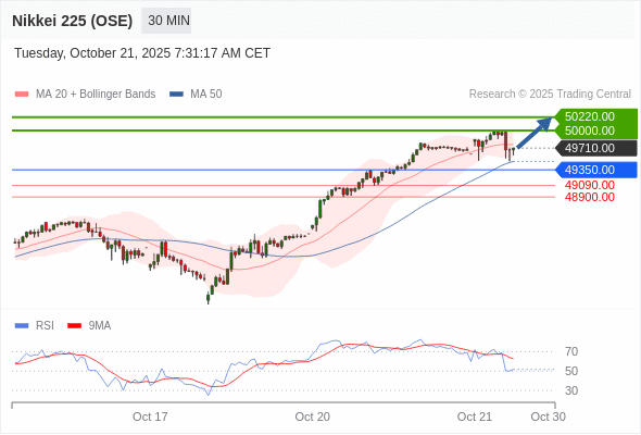 在 49350.00 之上,看涨,目标价位为 50000.00 ,然后为 50220.00 。