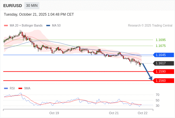 在 1.1645 之下,看跌,目标价位为 1.1590 ,然后为 1.1560 。