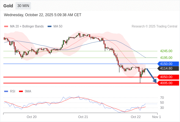 在 4150.00 之下,看跌,目标价位为 4050.00 ,然后为 4005.00 。
