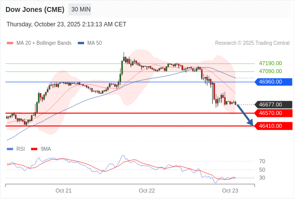 在 46960.00 之下,看跌,目标价位为 46570.00 ,然后为 46410.00 。