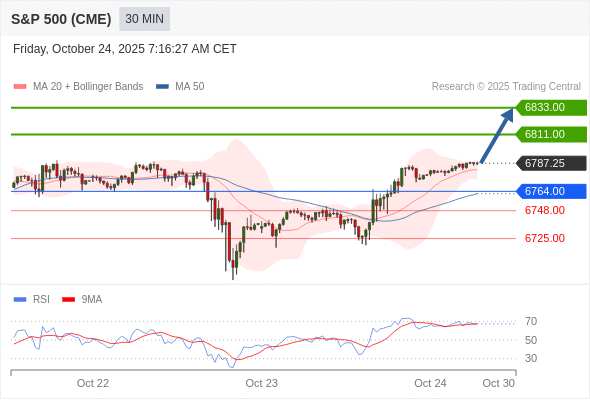 在 6764.00 之上,看涨,目标价位为 6811.00 ,然后为 6833.00 。