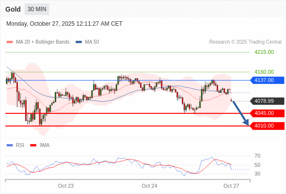 交易策略: 在 4137.00 之下,看跌,目标价位为 4045.00 ,然后为 4010.00 。
