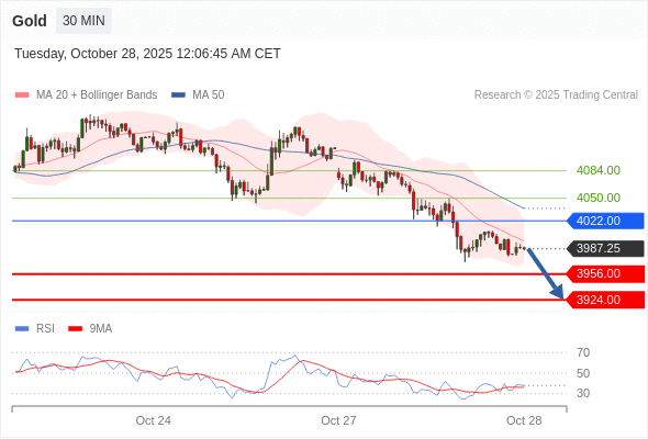 在 4022.00 之下,看跌,目标价位为 3956.00 ,然后为 3924.00 。