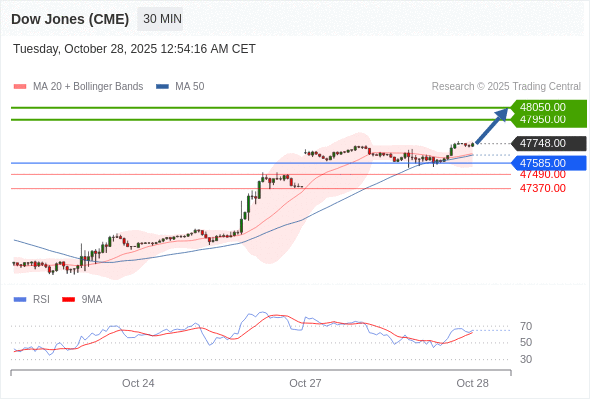 在 47585.00 之上,看涨,目标价位为 47950.00 ,然后为 48050.00 。