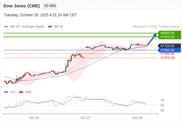 在 47585.00 之上,看涨,目标价位为 47950.00 ,然后为 48050.00 。