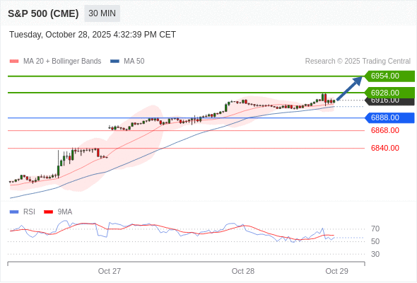 在 6888.00 之上,看涨,目标价位为 6928.00 ,然后为 6959.00 。