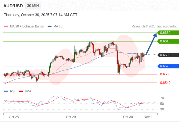 在 0.6570 之上,看涨,目标价位为 0.6615 ,然后为 0.6630 。