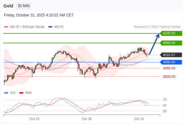 在 3980.00 之上,看涨,目标价位为 4060.00 ,然后为 4100.00 。