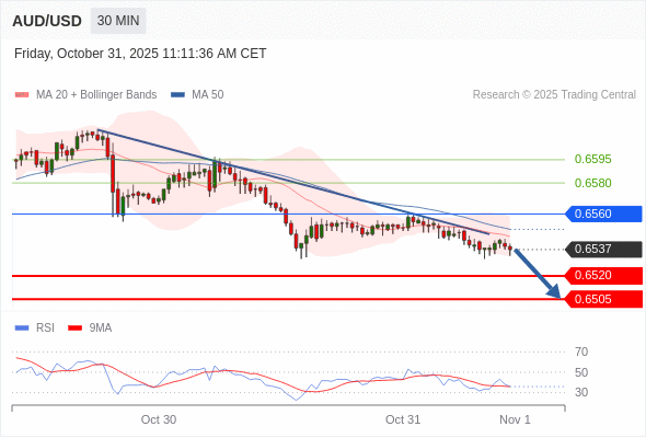 在 0.6560 之下,看跌,目标价位为 0.6520 ,然后为 0.6505 。