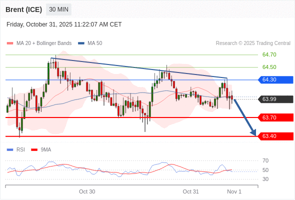 在 64.30 之下,看跌,目标价位为 63.70 ,然后为 63.40 。