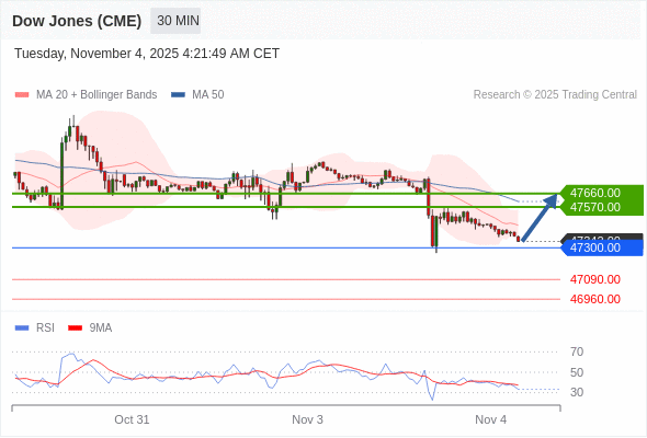 在 47300.00 之上,看涨,目标价位为 47570.00 ,然后为 47660.00 。