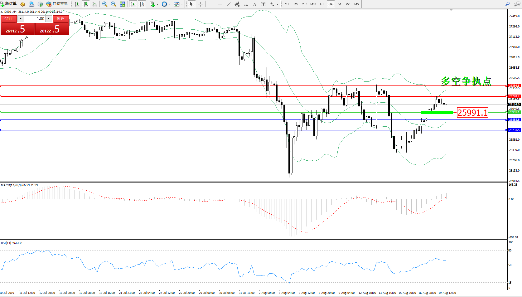 交易策略:25991上方看涨,目标26228、26384