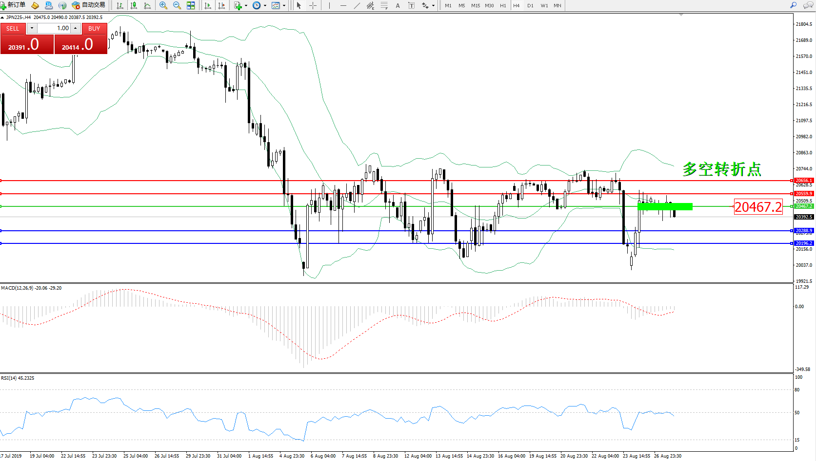 日经225指数827日(周二)收盘上涨182.46点,涨幅0.90%,报20443.50点。国际贸易关系出现一些和解迹象,安抚了投资者的紧张情绪;美国国债收益率下跌,部分投资者仍青睐较为安全的国债;两年期公债收益率报1.5326%,美国指标10年期公债收益率在亚洲市场跌至1.5249%,市场普遍认为收益率曲线倒挂是经济即将衰退的信号;围绕贸易协议的乐观情绪推动美元隔夜上涨,但感觉市场有些操之过急,部分交易员可以在该水平进行一些获利了结。