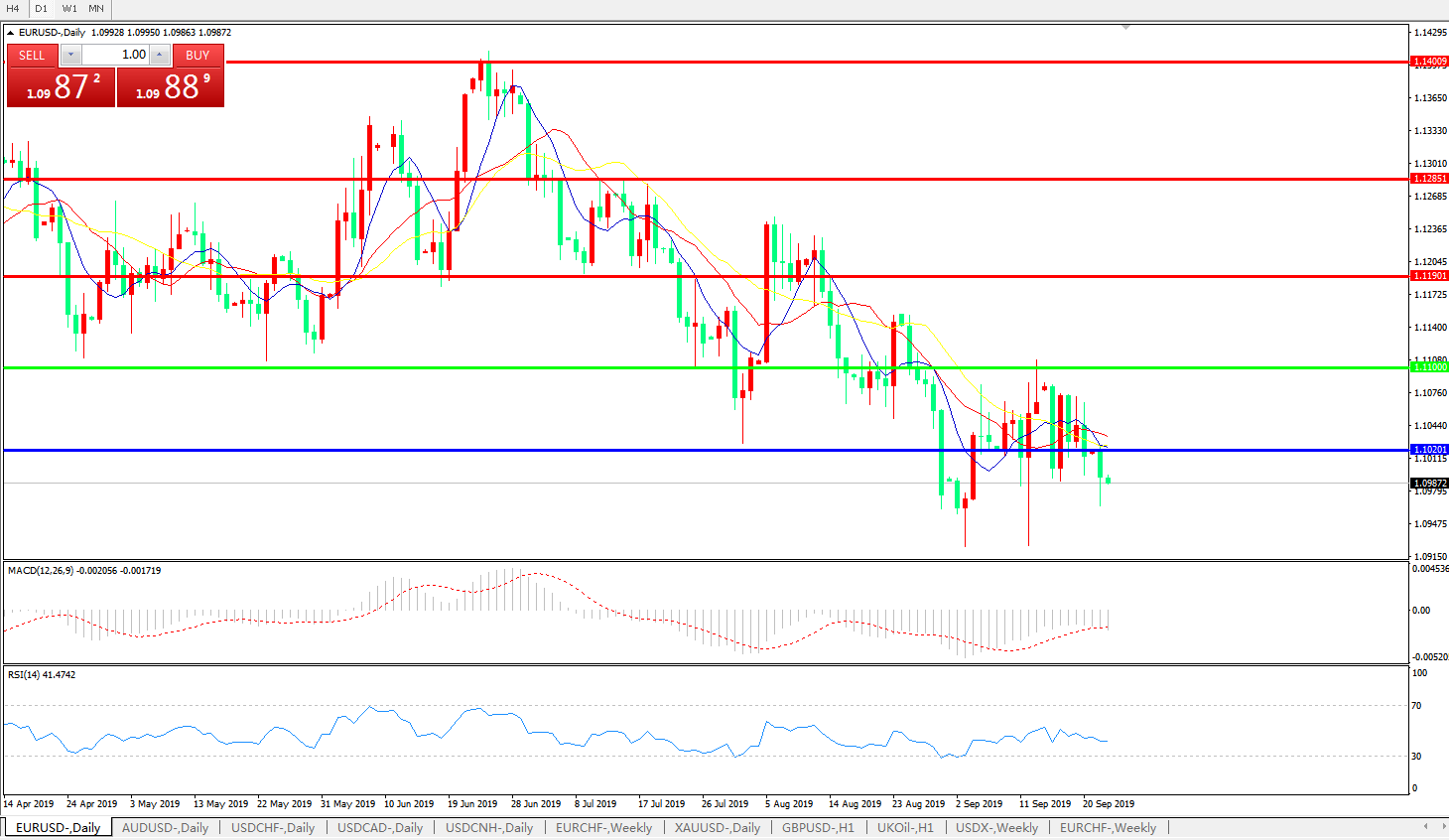欧元兑美元在周一进入欧洲时段后开始跳跌,在法国9PMI初值数据不及预期后跌触1.10关口,而此后,更加糟糕的德国PMI数据则对行情起到火上浇油的助推,令欧元兑美元汇价华丽失守上周以来的强力支撑位1.0985-90区间;德国9月制造业PMI触及41.4低位,远逊于各方预期并创下多年新低,原因是该国的支柱产业汽车制造业在全球需求结构改变和贸易压力的双重打压下陷入苦战,严重拖累了整体经济表现;虽然上周德国总理默克尔表示会通过向新能源汽车产业提供财政补贴来刺激经济活动,但是投资者对此反响并不积极; 这一提前宣判此后即将出炉的欧元区整体PMI会同样低迷,这将注定会倒逼欧洲央行在之后完成领导层交接之后继续扩大宽松力度,这对于欧元走势中期前景仍是利空。此后,前期1.0926处的双重底支撑可能会在短期内再度面临挑战