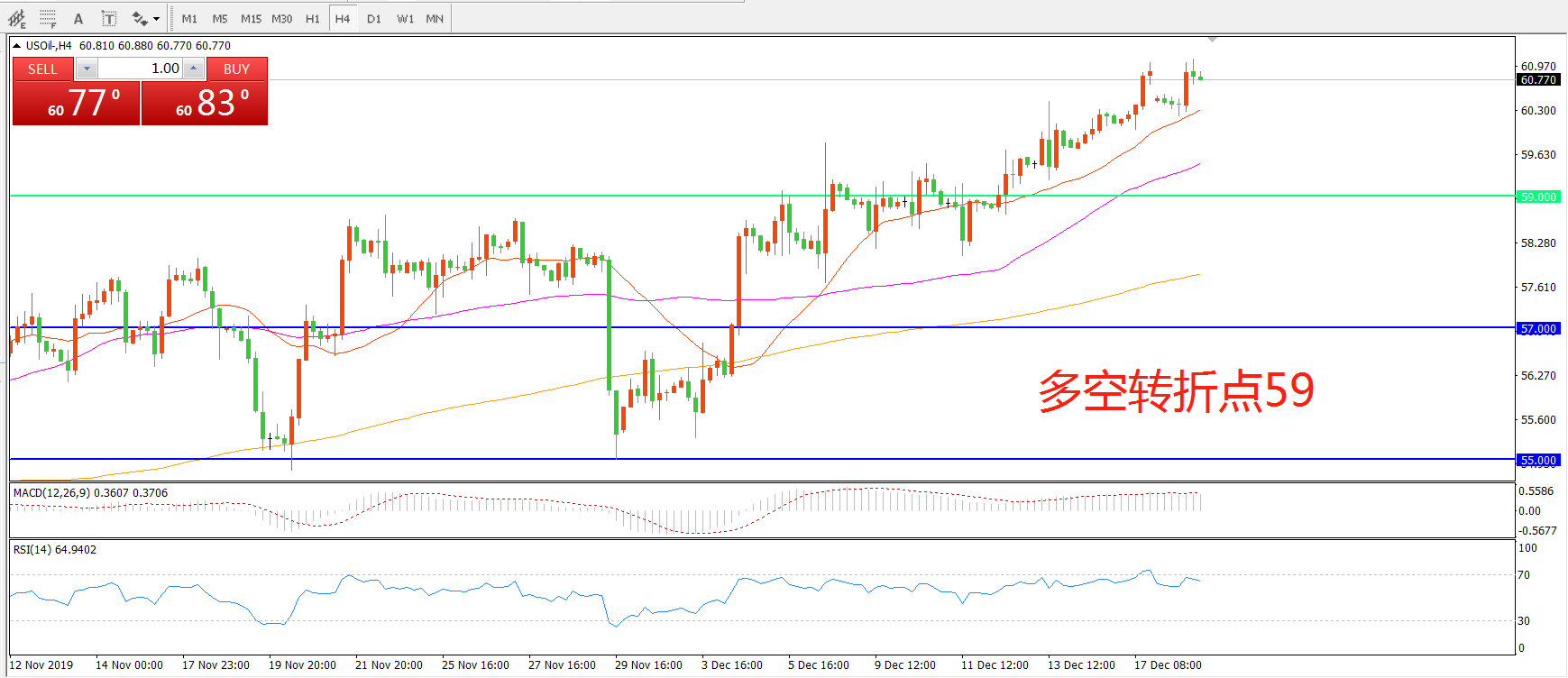 交易策略:在59.00 之上看涨,目标62.00       65.00