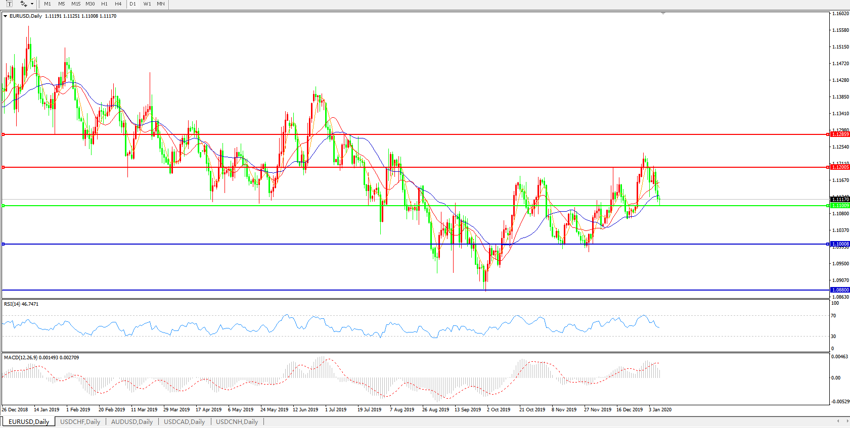 交易策略:1.1100上方看涨,目标1.1200、1.1285