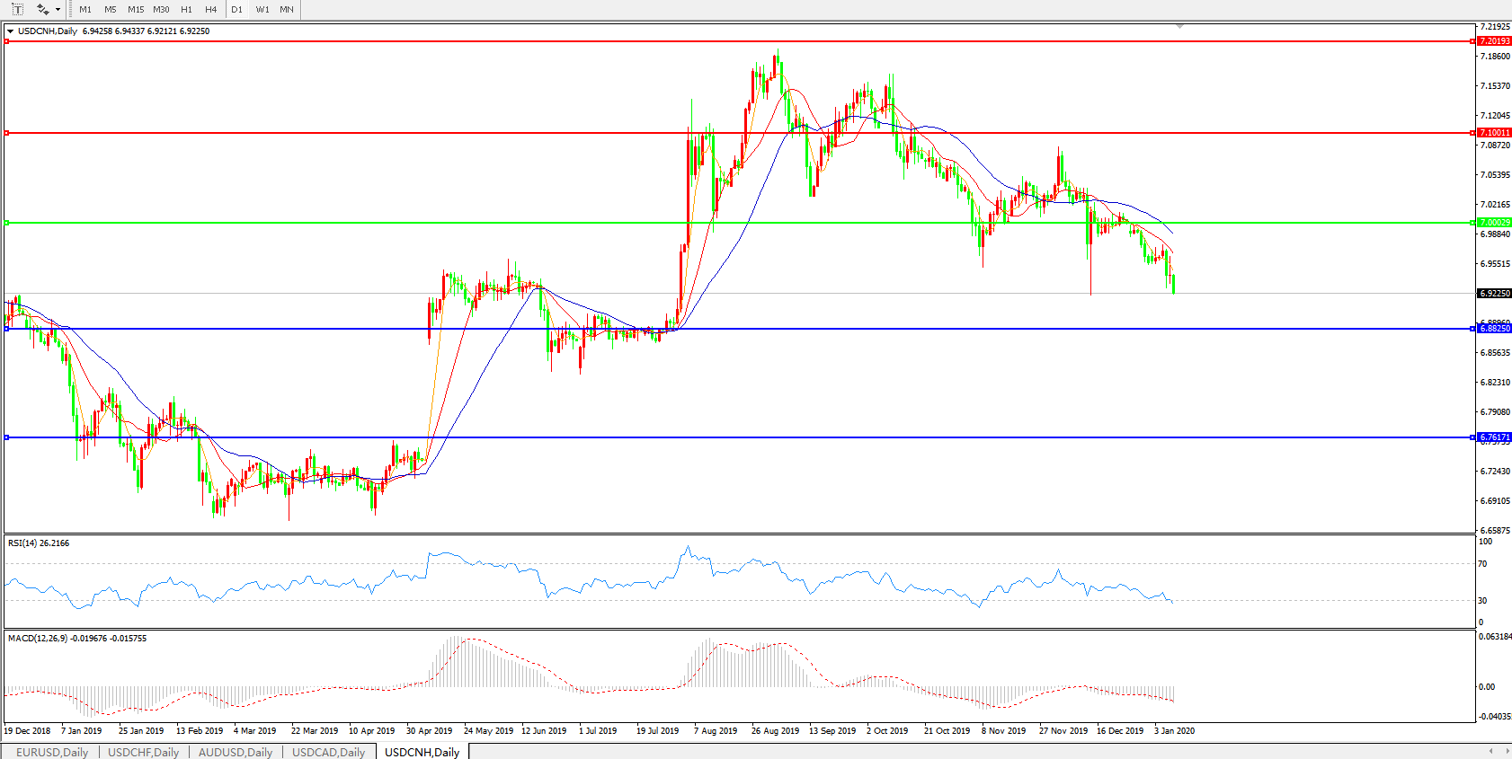交易策略: 在7.0000之下,看跌,目标价位为6.8820,然后为6.7600。