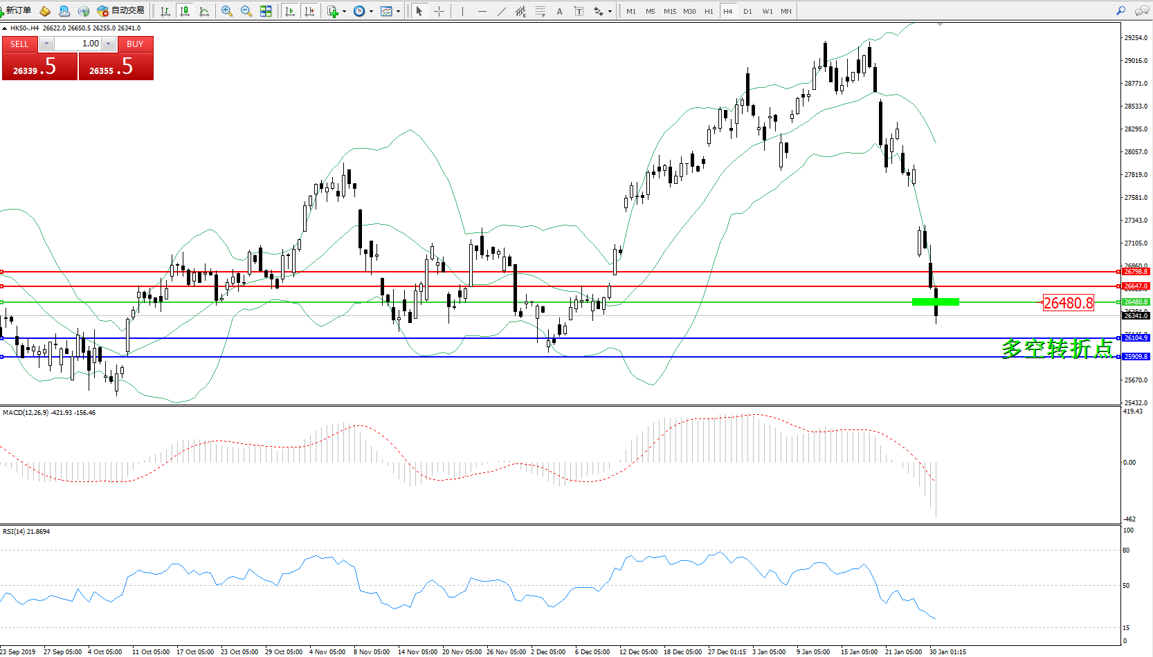 技术点评:空头动力持续下挫,延续布林带指标下行态势良好,前期低位破位在即,尚未有止步态势,且布林带指标持续张口走势中,MACD指标处于空头区域不断下移中,RSI指标处于空头区域低位弱势下行中;