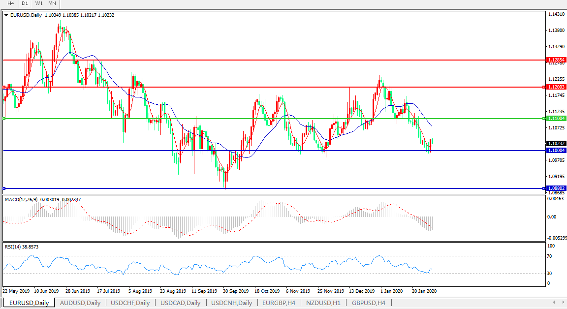 技术面简析:日图均线呈有序空头排列,汇价1.10关口止跌小幅反弹,MACD下穿0轴且量能0轴下方维持放量 ,RSI延续小幅走高态势,预计短期汇价小幅反弹整理修正,中期汇价料将进一步走低。
