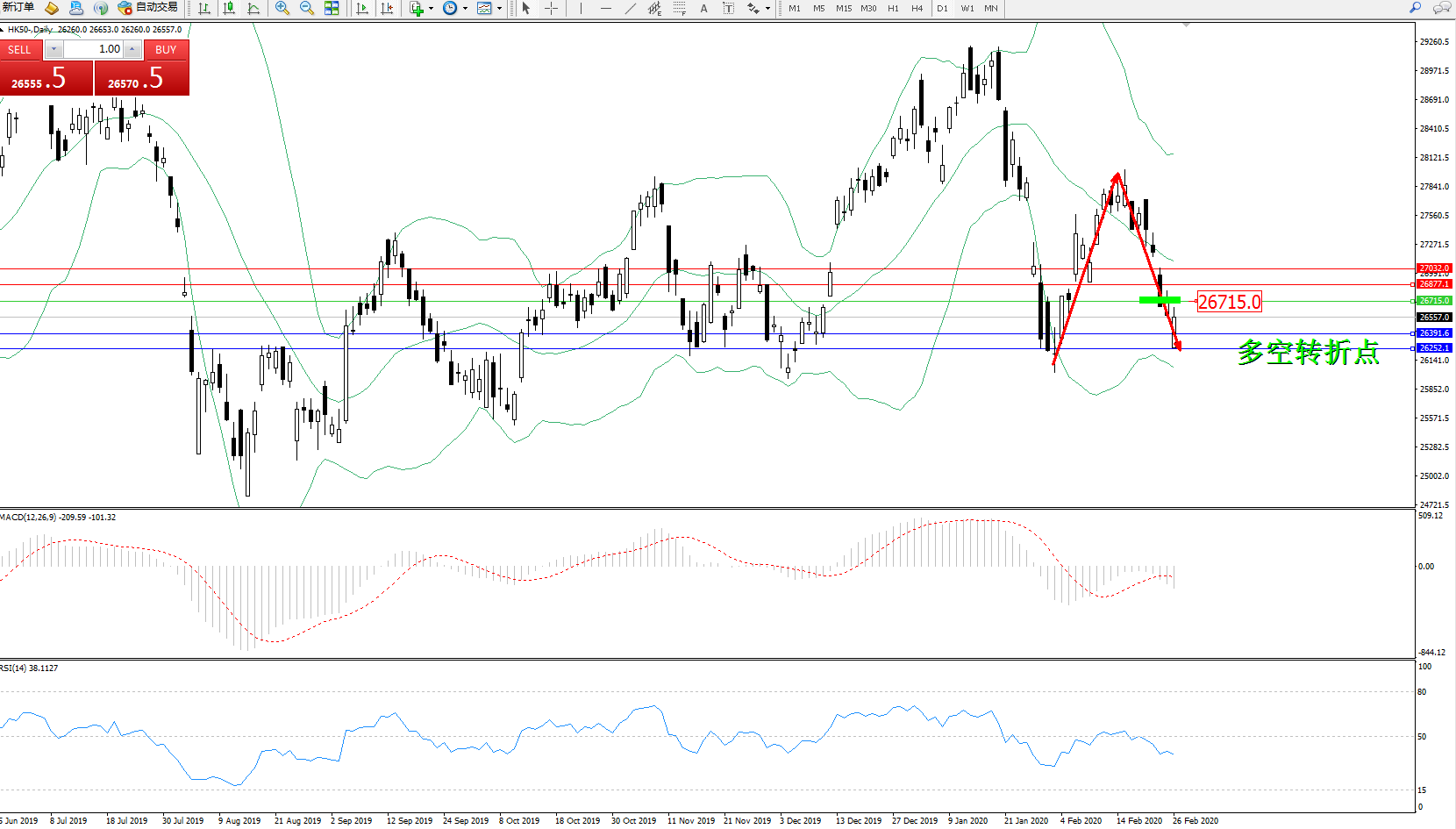 香港恒生指数226日(周三)收盘下跌196.74点,跌幅0.73%,报26696.49点;因外围股市大跌影响,今日港股市场集体大幅低开,上午香港推多项积极政策,上午盘主要股指有明显收窄现象。午后受A股大跌影响,又现回落。整体呈现低开回升之势,但表现依旧略显低迷。主板全日成交1195.97亿港元,港股通净流入45.39亿港元。基建股造好,中国交通建设涨2.7%,中国中铁、中国铁建、中国建筑逆势飘红。全球景气周期可能逐步见底,流动性整体仍然宽松,资金流入股市的趋势仍在继续,市场整体估值并不高,港股估值相对更具吸引力。港股短期“逆风前行”,立足中长期逻辑耐心逢低配置。短期做好防御,便宜是硬道理,配置高分红的价值股;立足中长期,精选港股科技股龙头。