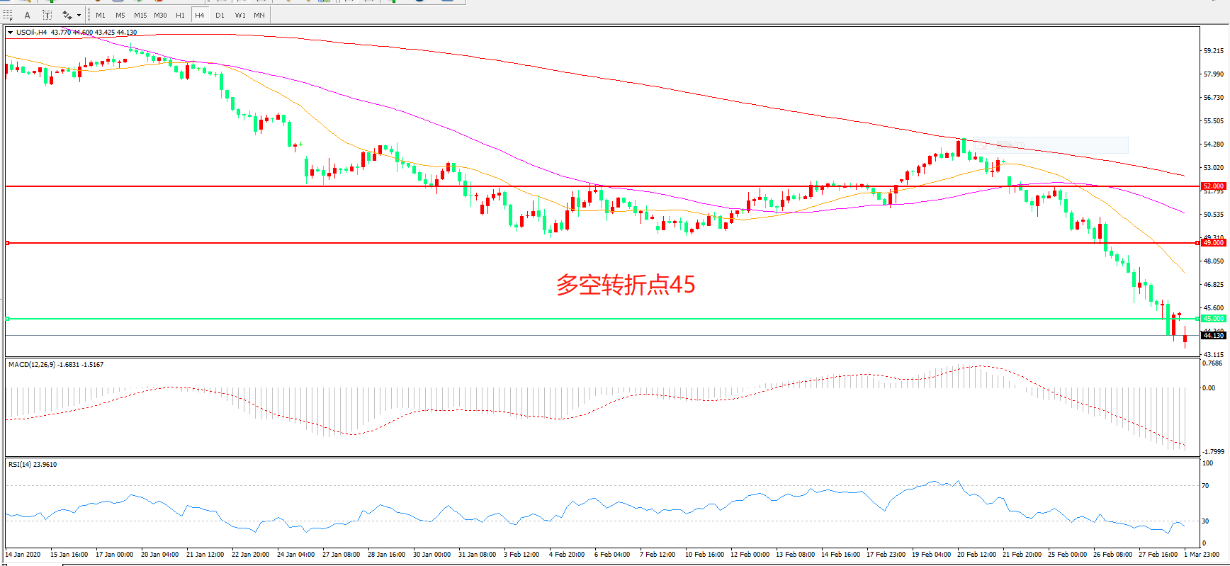 交易策略:在45.00之下看跌,目标40.00 36.00