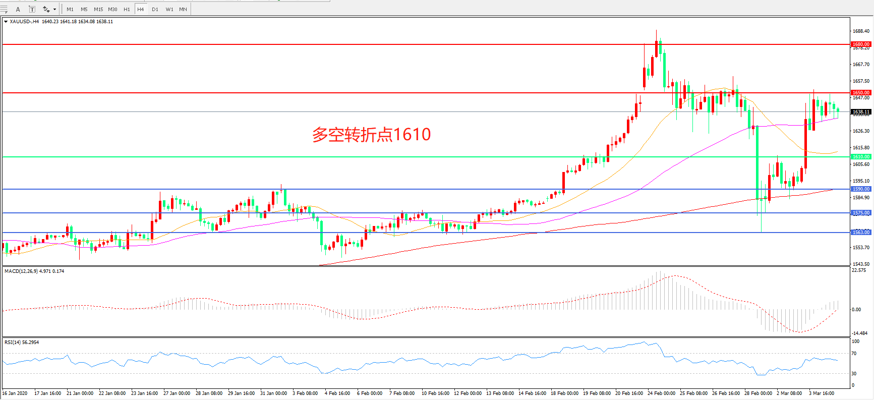 多空转折点:1610.00