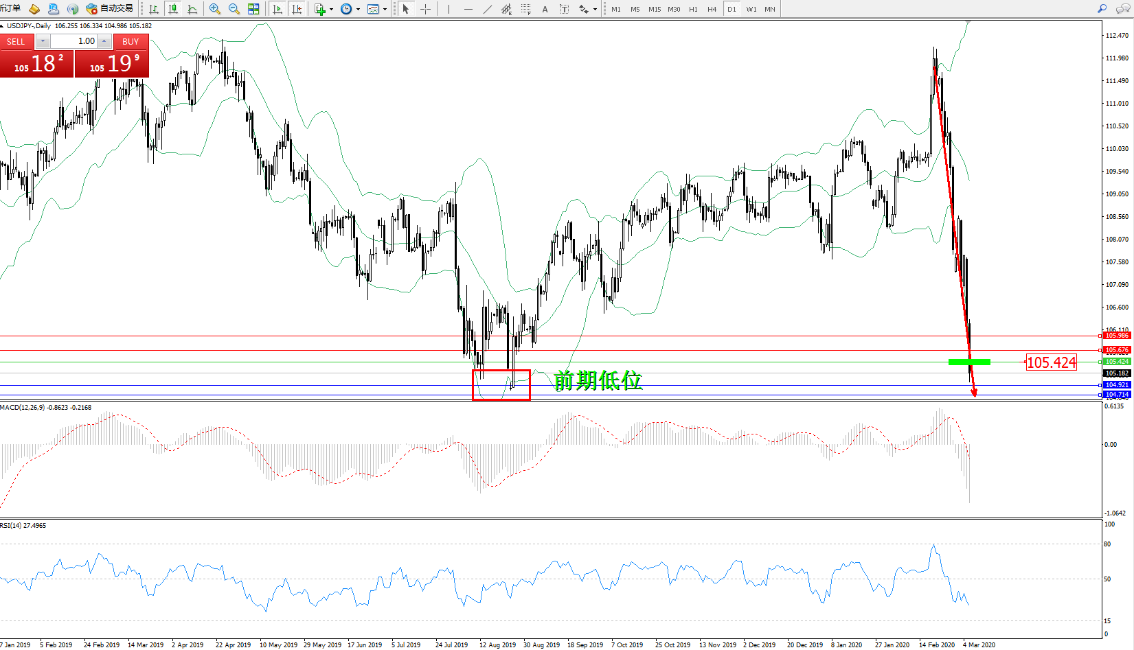 美元兑日元跌0.73%105.38;最低触及104.99;虽然日本国内也发生了疫情,而且2月中旬日元因此还遭到一波抛售。但从2月底开始,投资者发现,日本国内的疫情似乎并不严重,而日元接下来则体现出避险货币的属性。在美联储大幅度降息的背景下,虽然日本央行承诺推出更多的宽松措施以应对危机,但无奈日本央行下调利率的空间太小,这就收窄了美日两国的利率差异,投资者重新购入日元避险,从而大幅度压低了美日汇率。日本央行称将提供流动性确保金融稳定。由于疫情蔓延导致投资者担忧情绪升温,全球股市大幅下挫。日本央行行长黑田东彦表示将努力提供充足的流动性并确保金融市场的稳定。
