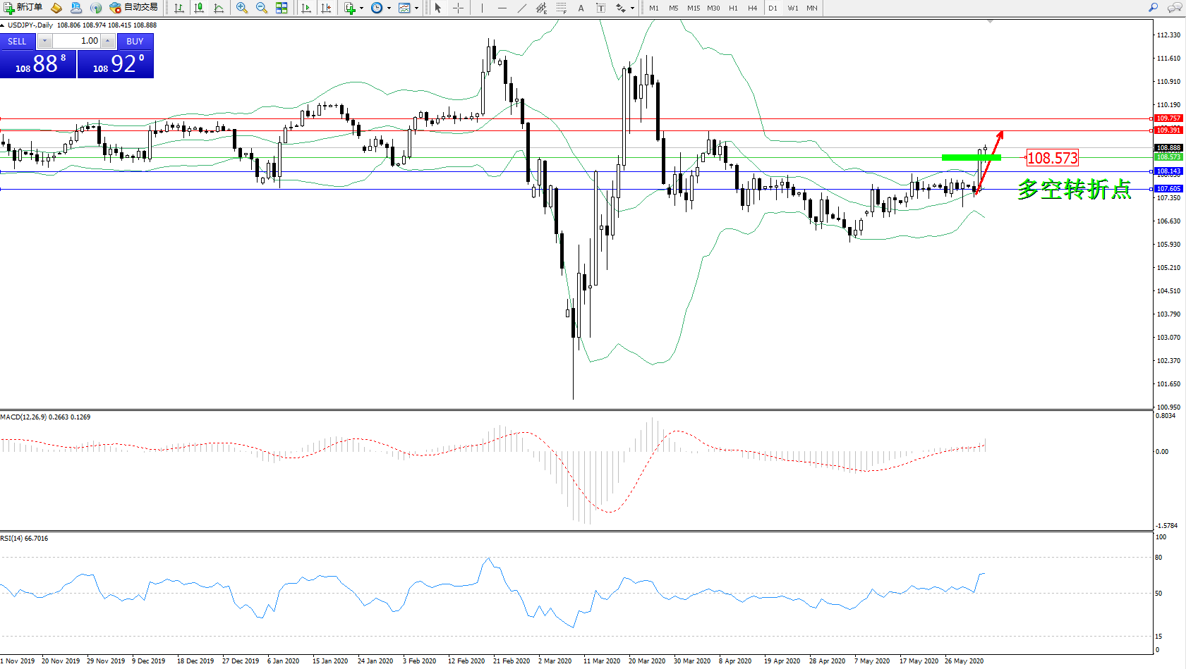 多空转折点:108.573