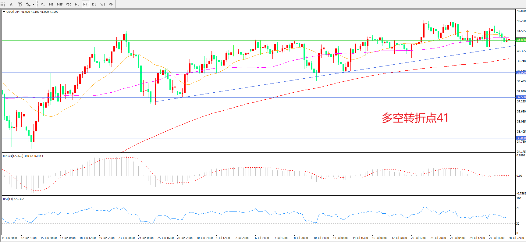 周三(7月29日),根据美国能源信息署公布的数据显示,EIA原油库存变动实际公布减少1061.10万桶,大幅好于预期,但油价却表现平平,美国WTI原油基本维持平盘,收报41.28美元/桶。在全球新冠疫情持续的背景下,原油需求复苏的前景仍低迷,油价可能仍将维持高位窄幅震荡格局。
