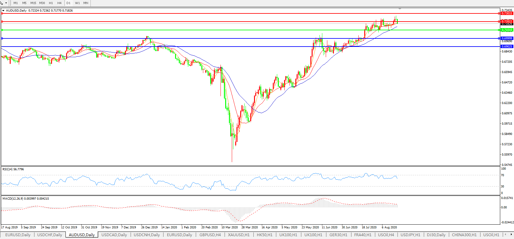 交易策略:0.7100上方看涨,目标0.7200、0.7300