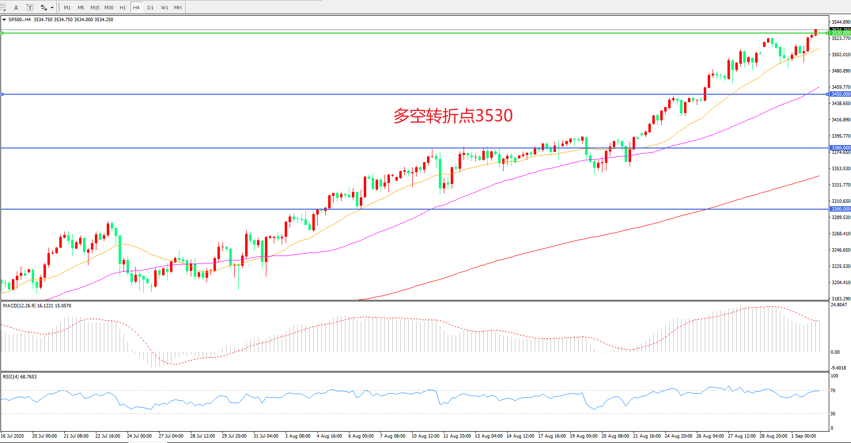 备选策略:在3530.00之下看跌,目标3450.00          3380.00