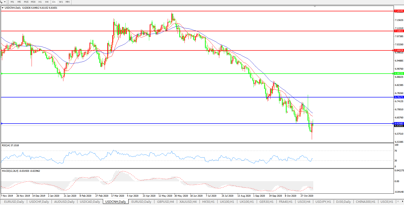 美元兑人民币USDCNH    日线图: