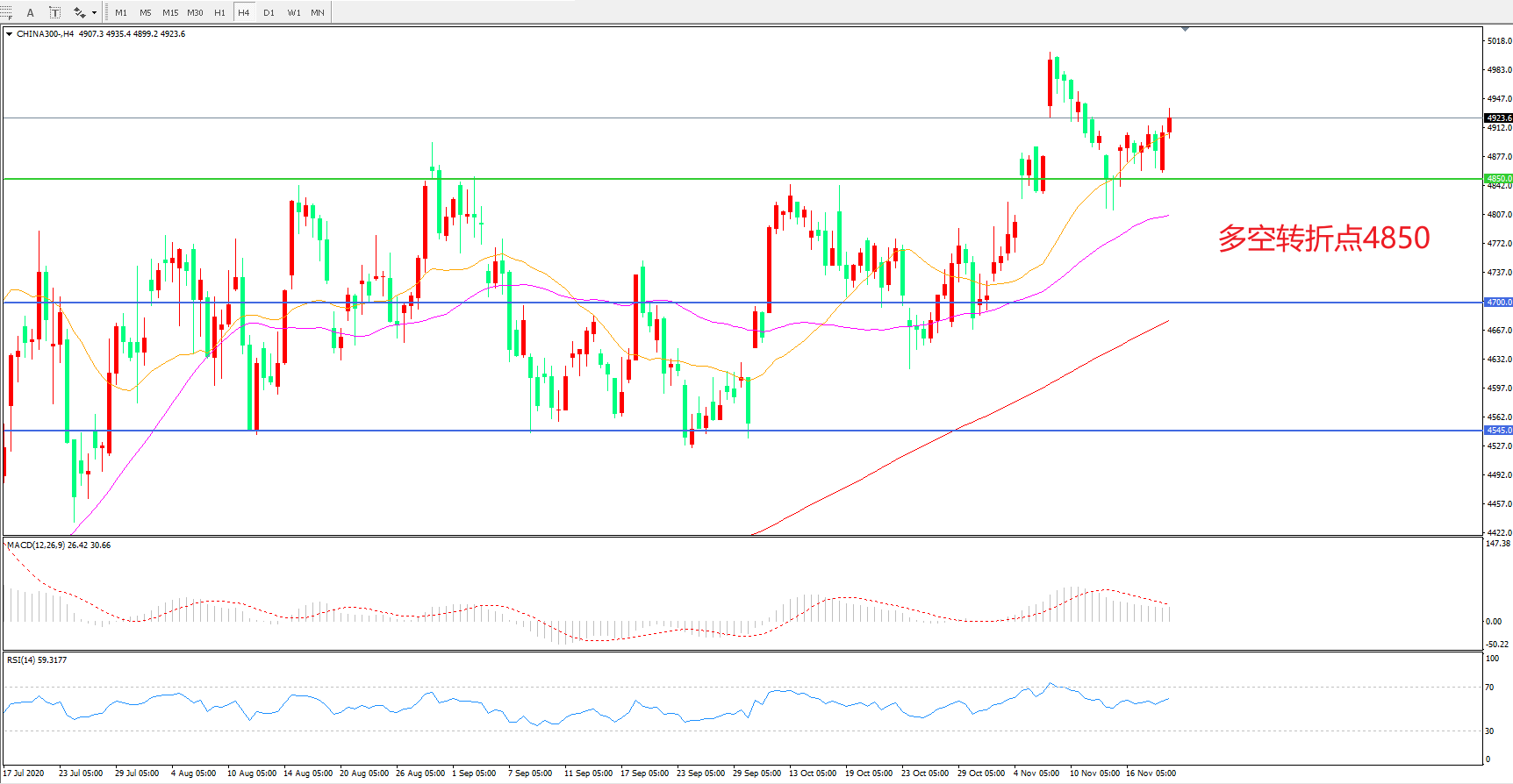 交易策略:在4850.00之上看涨,目标5000.00       5150.00