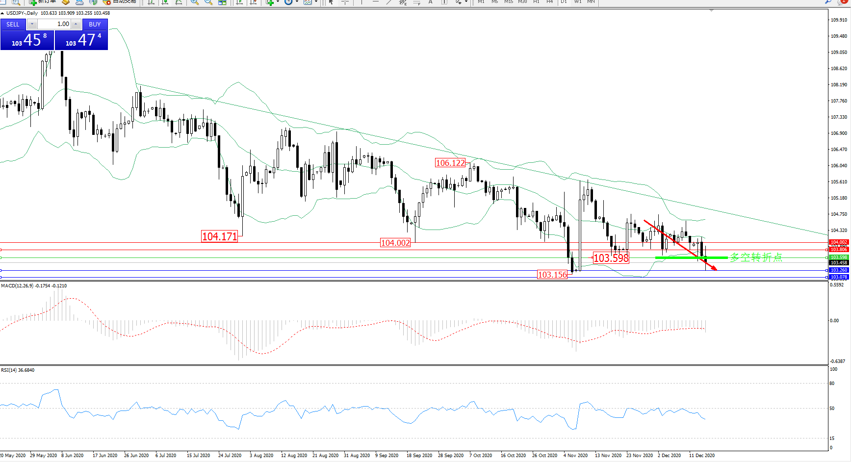 美元兑日圆震荡下行至103.419附近震荡,日本首相菅义伟上台已满三个月,然而,11月中旬以后,日本新冠疫情急转直下,菅义伟的应对方案备受批评,导致其支持率跌至新低。菅义伟上台成立“防疫内阁”,内阁秘书长由前卫生部长出任,他也采用了顶尖的疫情专家作为参谋。菅义伟因为是平民首相,上台时的支持率是历届首相第三高,达70%。然而近期其支持率狂跌。美联储货币政策决议发布在即,在美国财政政策前景仍然风雨飘摇的背景下,美元指数继续承压,非美货币集体走向,市场资金也从美国市场进一步外流。