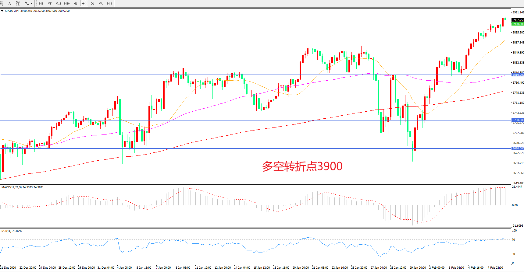 目前美国等国的感染人数呈下降趋势,让市场倍感欣慰,拜登设定了在他上任的头100天里至少接种1亿剂新冠病毒疫苗的目标,对控制疫情意义重大。上周五公布的美国就业数据弱于预期,这在疫情挥之不去之际加强了经济风险,但也突显了进一步刺激经济的理由,这些信号给了人们信心和买入股票的理由。